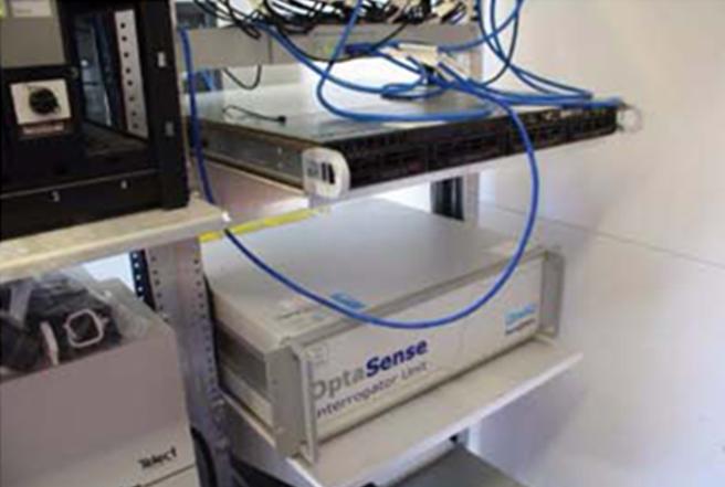 柏林頓北方聖塔菲鐵路公司(BNSF Railway Co.),是運營北美洲最大的鐵路之一,擁有51,500公里的運營網路,遍及美國的28個州和加拿大的2個省。BNSF每年運送超過500萬個集裝箱和拖車,亦被公認為世界最大的鐵路多式聯運承運公司。圖2(a)為在風河(Wind River)峽谷南側所拍攝的照片,該峽谷位於懷俄明州(Wyoming)中部並呈南北走向。在2010年5月期間,一輛運行在峽谷旁單一支線之列車,衝撞到掉落於鐵軌的巨石(約30噸),導致列車車頭及3節車廂發生出軌意外。為了防範再次的意外發生、及考量電子式感測的缺陷,BNSF在該路段安裝光纖分散式聲波探測系統(DAS),監測距離長達22英哩,圖2(b)為在鐵路側邊處,埋入一通訊用光纜,並同時作為DAS感測光纜。圖2(c)及(d)為現場臨時監控機房與DAS偵測系統實景圖,透過臨時監控機房圖控監測畫面,可立即判斷監控區域範圍之鐵路是否遭遇落石危害,如圖3所示。