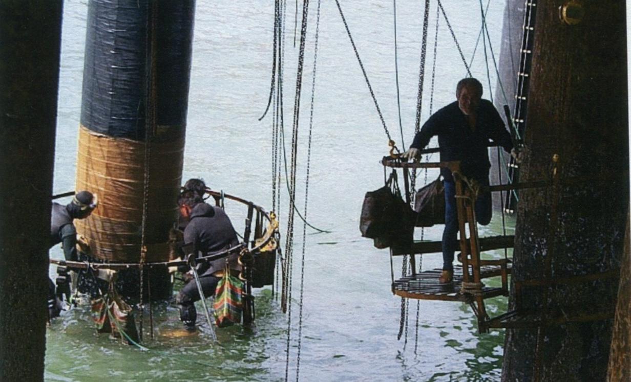 除卸油管之防蝕處理,係在連絡橋上施作外,鋼管樁之防蝕帶包裹及其FRP保護套的安裝,皆仰賴有經驗的潛水伕,在海面及海中施作,受天候及海象影響頗大,因此不論是施工的困難度及危險性都很高,值得慶幸的是,本案的防蝕處理工作,係在零災害的情況下順利圓滿的完成。