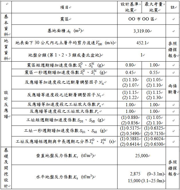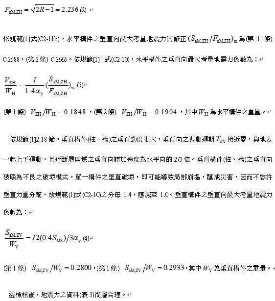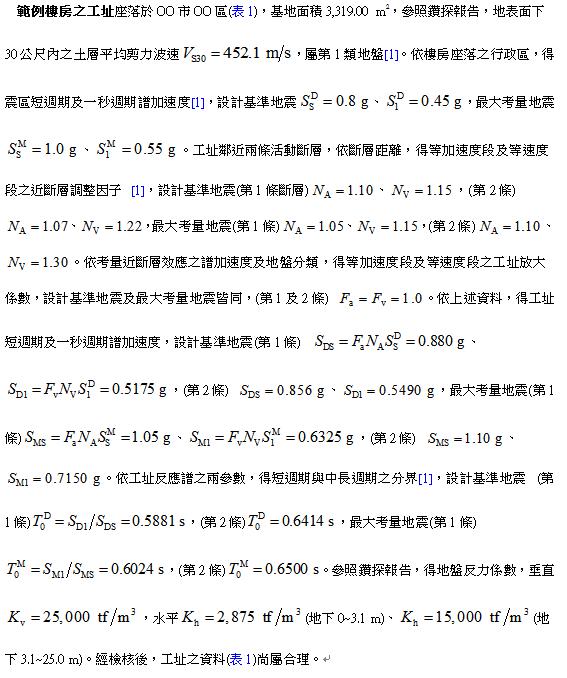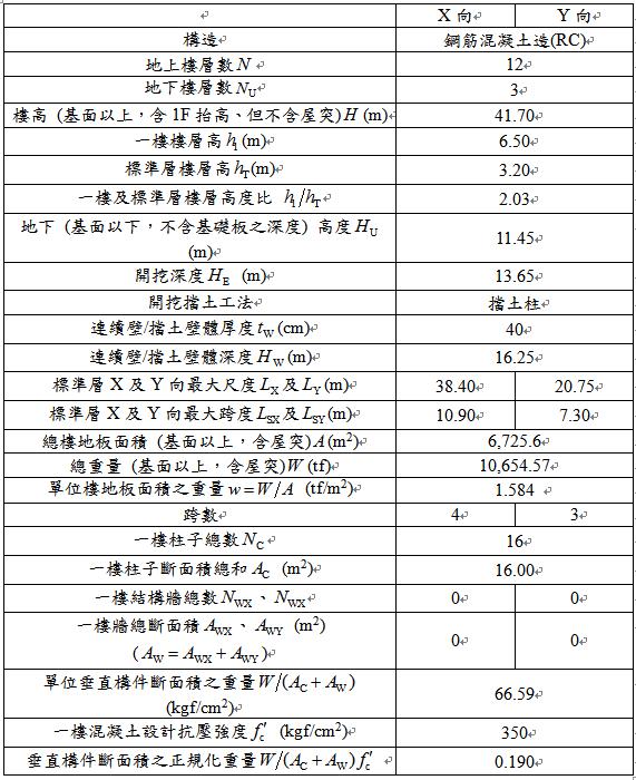 表3 地震力之資料