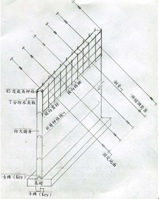 | 油槽防火牆的施工經驗談 范弘芳 技師 前言 油槽周遭防火牆的功能,是當油槽遭到破壞,而油料全數外漏起火燃燒時,外漏燃燒的油料,不會溢流出防火牆而漫延至外面,造成大災害,故設計時必須考量防火牆所構築的四方形體積,必須大於圓柱形油槽體積,因此油槽防火牆的高度,取決於防火牆構築的四方形區域是否大於油槽圓形面積。而一般防火牆所構築的四方形區域,大部分都小於油槽圓形面積,因此防火牆都很高。筆者於70年左右,負責林口電廠5000公秉輕油槽的油槽基礎、及防火牆的土木工程監造工作,位址在電廠區外的海邊,防火牆高度達9公尺,玆將施工要點簡介如下: 基礎的施工 當油槽圓形平面的基礎完成後,隨即進行防火牆基礎的施工,為防止防火牆由於地震力等水平側向力產生的滑動,不僅於基礎底設置向下凸形的卡榫(Key)深入土中,也在基礎與牆體之接觸面,設置凸形的卡榫,防火牆基礎經過開挖、敷底混凝土澆置、放樣、鋼筋組立及一般模板組立後,澆置混凝土後,基礎施作完成。 牆體的施工 高度9公尺的防火牆,俟鋼筋組立完成後,係以7分厚、4尺×8尺之防水夾板作為清水模板,採分層組立及分層澆置混凝土的方式施作完成。模板組立時,為了使澆置後混凝土每升層的線條平整一致,在升層的銜接處釘一道水平木押條;為避免牆頂兩側直角邊,在吊裝油槽鋼板時不慎碰撞而崩角,在牆頂兩側釘5cm×5cm的45度截角木押條;另為因應熱脹冷縮的氣溫,以及地震搖晃的伸縮,防火牆每隔20公尺,設一處保利龍(甘蔗)板的伸縮縫,且為了防止滲漏,在伸縮縫處設置止水帶,連接兩側的防火牆。 模板的支撐在3公尺以下的高度,採用木角材支撐,超過3公尺以上木角材無法支撐的高度,則使用鋼索交互固定在對側模板縱向的貫材上後,將鋼索往下拉固定在地面,另於鋼索安裝伸縮器,以便調整鋼索的鬆緊度。 進行混凝土的澆置,為了使升層間的混凝土接縫密合,澆置面除了在事前用水沖洗乾淨外,先澆置一薄層的水泥砂漿,然後再澆置混凝土;為了使伸縮縫及止水帶挺直,採取隔段方式澆置,即先將兩側設置伸縮縫及止水帶,並以模板封住完妥段之防火牆,澆置完畢,俟拆除封模後,再澆置其他段的混凝土;為了使防火牆完成面平整,無蜂窩、氣孔,於每層模板拆除後,將表面沾黏的水泥砂漿清理乾淨,並塗上脫模劑後,再做為下一層使用,以及在澆置過程中,於模內使用震動機震動,在模外則以木槌敲擊方式來搗實混凝土。 防火牆頂層施工中的示意圖 結語 林口電廠5000公秉輕油槽的基礎及防火牆土木工程,廠商係以低於底價七折以下的標價取得,因此上級的長官於開工之際,一再的叮嚀筆者:要慎防廠商因承攬金額之低,有偷工減料之虞。因此,筆者與另一位後輩助理,在星期例假日是輪流休假,施工期間都有人駐在工地監造施工。 林口電廠地區,開工時,適逢吹著寒風、下著細雨的冬天,因此幾乎每天都穿戴著雨衣、迎著寒風細雨,步行到距離監工房約需20分鐘,濱臨海邊的工地,執行監造施工任務。除了要密切監視施工品質外,還要容忍穿戴雨衣,悶熱流汗、濕透衣裳不舒服的感受,歷經了冬天、春天及夏天,近7個月的時程,終於將油槽基礎及防火牆,如期、如質的完成,移交給機械部門,施作後續鋼板組裝的油槽工程。