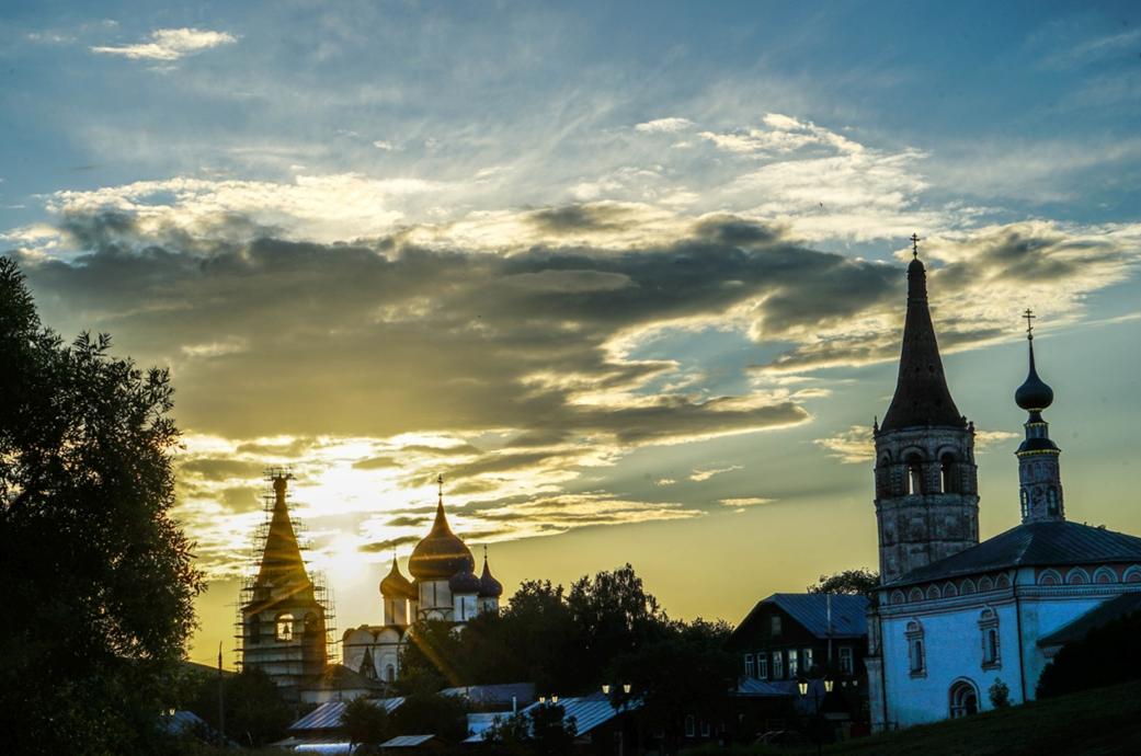 第二天展開莫斯科『金環之旅』,『金環』,係指以莫斯科為起點,從東北方伏爾加河,往西南繞行一圈回到莫斯科,將中世紀七座充满魅力的文化古鎮串聯起來,形成如項鍊般的環形,故稱「金環」。我們先參觀弗拉基米爾的黃金門及聖母升天大教堂,白色金頂的教堂在藍天白雲的襯托下,除莊嚴肅穆的感覺外,也令人心曠神怡。傍晚時,抵達讓人感覺像是世外桃源的古城蘇茲達里,7平方公里的小鎮竟有87座教堂及修道院,數百年來始終保持純樸的鄉村宗教氣息。用完晚餐,天仍甚亮,獨自帶著相機四處逛逛,清澈的河水伴著平疇田野,燦爛的晚霞映照如童話世界的教堂,有渾然忘我的感覺。