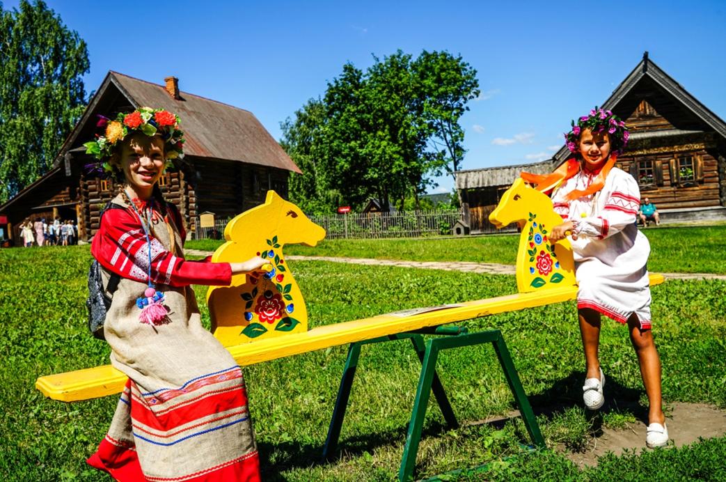 翌日,先參觀木製建築博物館,博物館所展示的木造建築包括:教堂、農民房舍、畜欄、穀倉、水井及風車磨坊,大部份建於18世紀。在此巧遇一群穿著傳統俄羅斯服裝的小學生來此遊玩,喜愛幫小孩照相的我,真有喜出望外捕捉鏡頭的驚喜,這群小孩也都不怕生的任你拍照,邀他們合拍也是來者不拒。接續參觀五個壯觀藍色圓頂的基督誕生大教堂,教堂最早建於1102年,木造教堂腐壞後,於1222年以石灰岩重建,白色石灰岩外牆上,雕滿各式各樣的漂亮花紋,內部壁畫神像裝飾,美侖美奐,美不勝收。用完午餐後,搭馬車逛克里姆林宮,來此方知克里姆林的俄語,即為城堡之意,故各地皆有克里姆林宮。