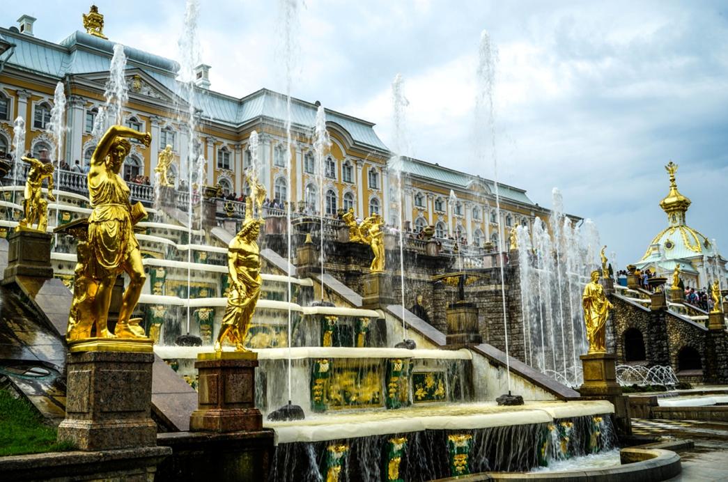 上午到彼得霍夫夏宮,是珍藏許多藝術珍品金碧輝煌的宮殿與花園,也稱作俄羅斯的凡爾賽宮殿,已被列為世界文化遺產。上花園約占地15公頃,下花園建於1714~1723年,佔地約102.5公頃,非常漂亮。花園中心的階梯噴泉,由64個噴泉、與200多座金色雕像組成,據說是根據1715年沙皇彼得大帝親手繪製的手稿興建。