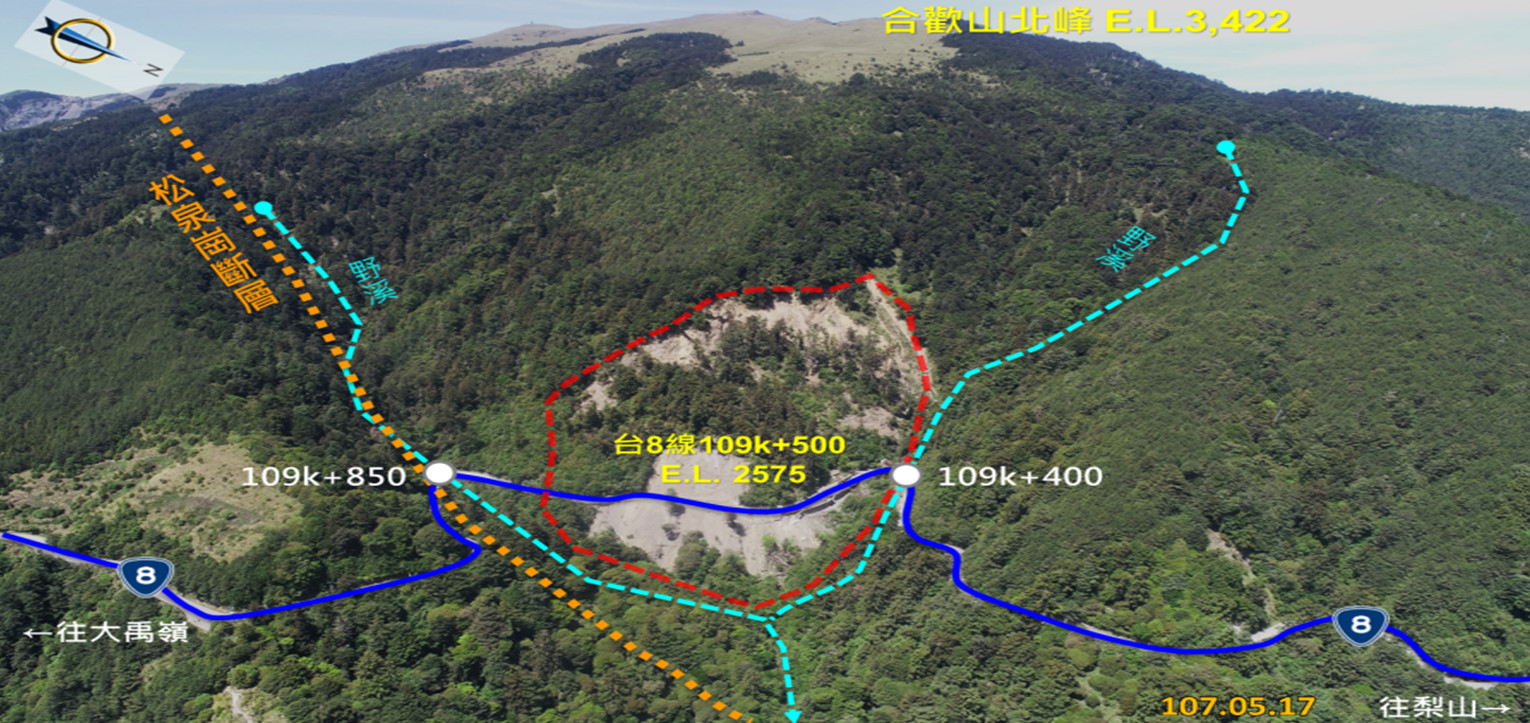 台灣山區地質構造複雜且破碎,加上興闢道路、高山農業開發之影響,在氣候變遷急降雨情況下,山區道路邊坡崩塌事件頻傳。本文以台8線109k大禹嶺邊坡為例,詳圖1,該邊坡由於地質破碎、遇雨易入滲、剪裂泥阻水、地下水位高、坡趾遭蝕溝侵蝕、淘刷,坡體易失去支撐。在長期治理對策完成前,先以深層集水井降低坡體含水量,提升邊坡安全性,維持道路基本通行功能。面臨高海拔地區之局限空間作業,在主辦機關、監造、設計及施工等團隊重視及合作下,目前已完成深層集水井之施工,特將相關職安作為,提供技師先進參採,共同推廣施工安全文化。