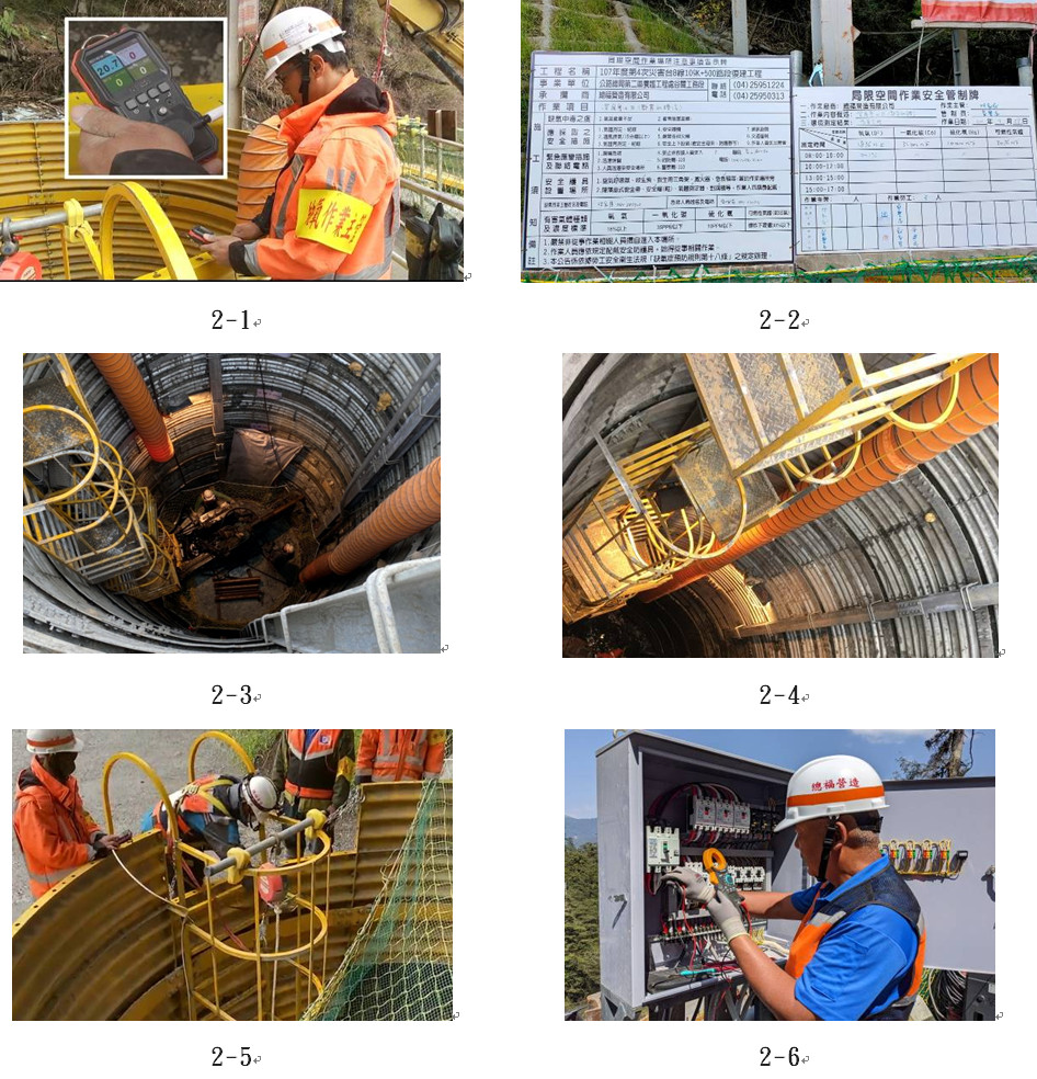 2. 缺氧作業主管實施井底環境檢測,確認井底環境中氣體含量符合規定並紀錄。(照片2-1、2-2)