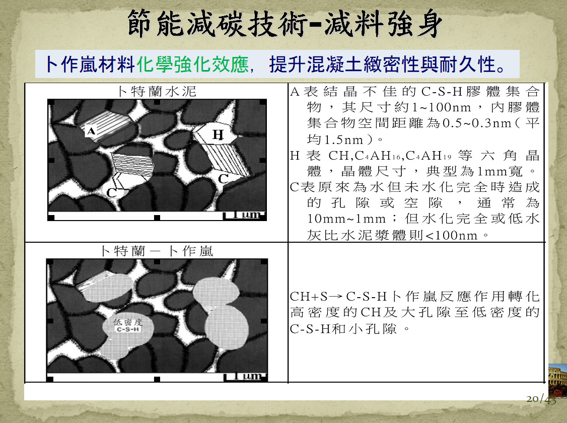 | 圖7 卜作嵐材料的物理緻密和化學強化的效益 |