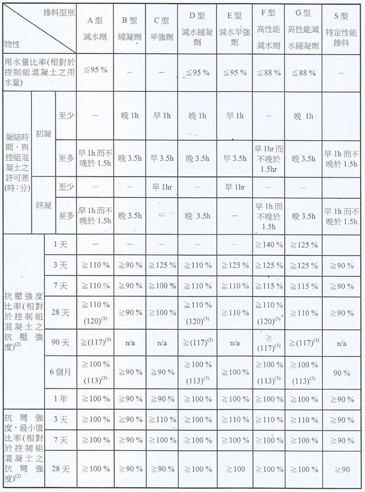 | 表1 化學摻料物性要求表【參考文獻(3)及(4)】 |