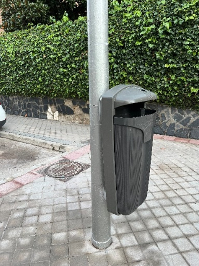 照片11 氣候乾燥,鍍鋅燈桿基礎均直接埋入人行道下方,垃圾桶附掛燈桿上, 減少占用人行路面。 |