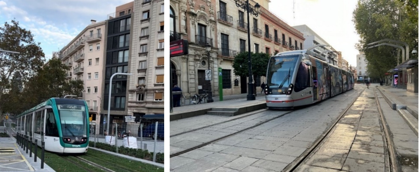 照片14 左邊照片巴塞隆納輕軌、右邊照片塞維亞輕軌, 高雄輕軌就是採用西班牙輕軌系統。 |
