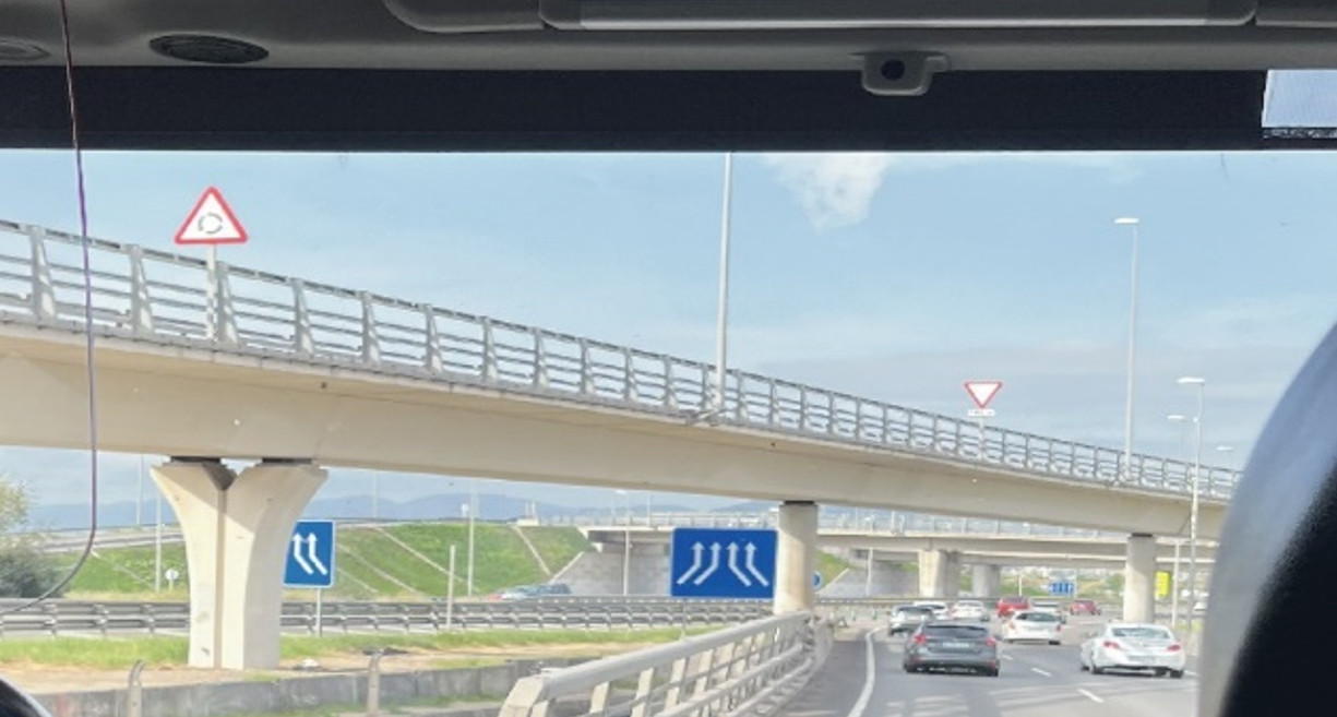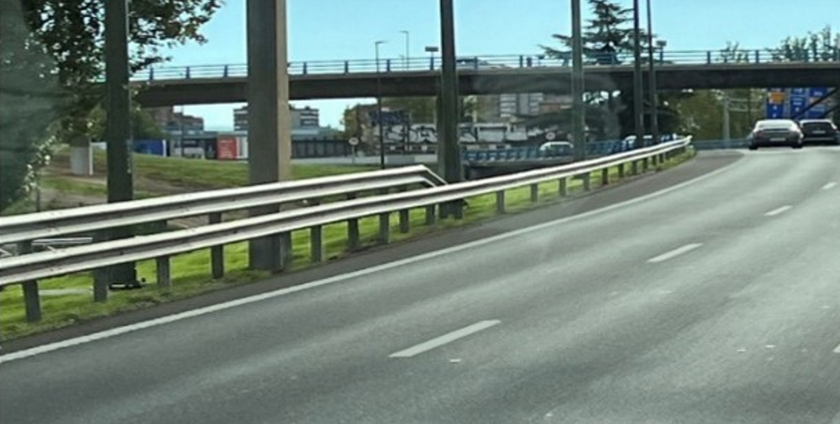 照片5 高架橋車道側護欄,直接採用鏤空型鋼護欄,底部未設置RC胸牆 |