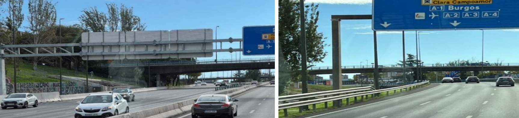 照片8 西班牙廣大平原,公路以路工為主,雙向車道間留設自然邊坡綠帶, 路側以鋼板護欄為主。 |