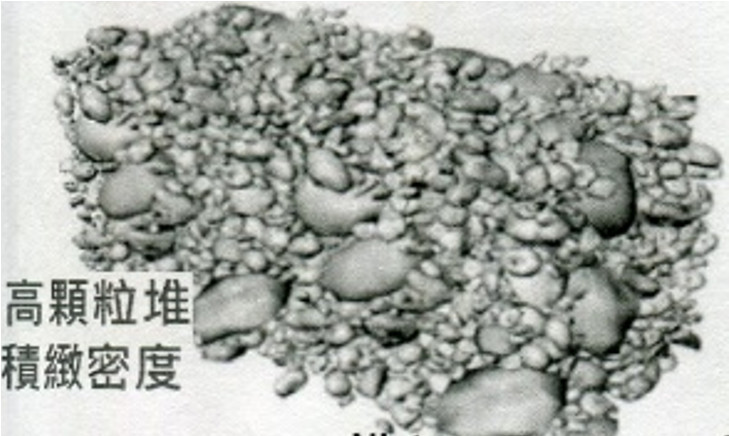 |  圖1  不同粒徑高顆粒堆積緻密 |