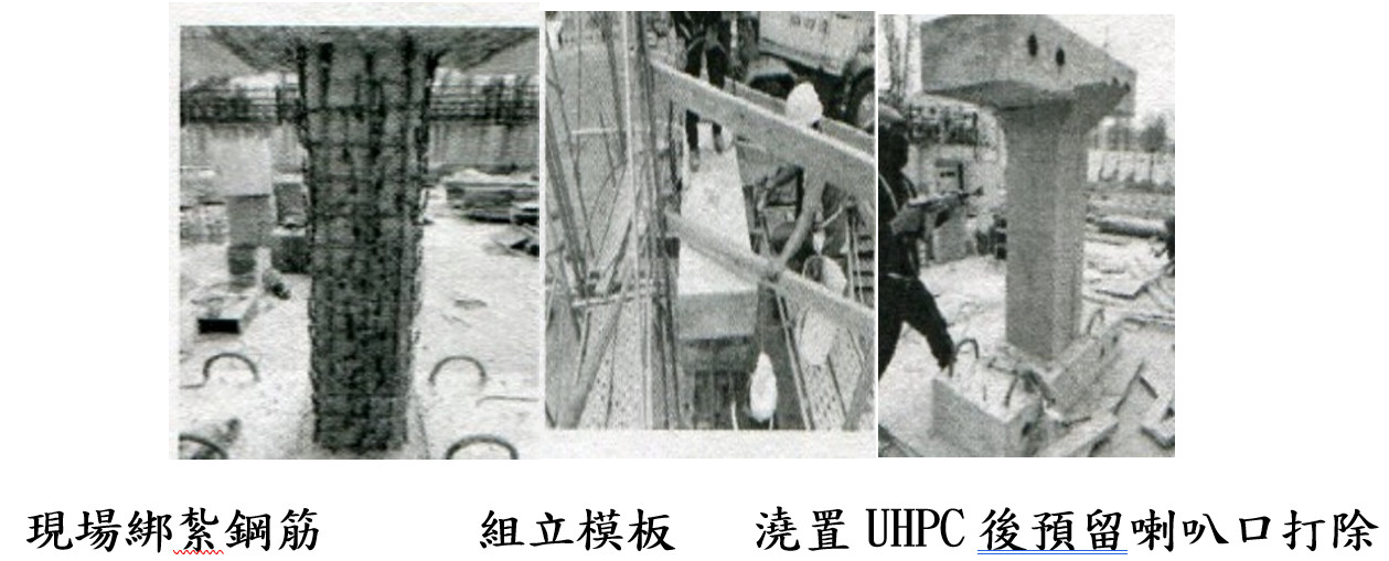 類似傳統的濕式工法,於現場綁紮鋼筋或鋼筋網,組立模板、澆置UHPC包覆層後,將預留喇叭口打除(詳圖3)即完成。