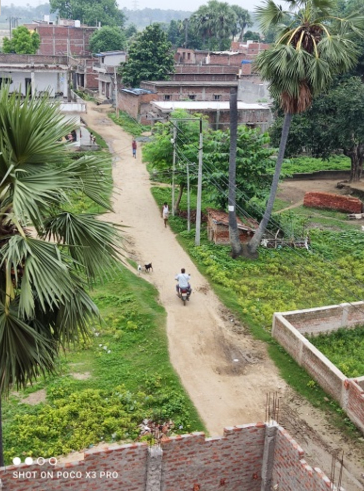 從旅店眺望迦耶街道(照片4),鄰近建物幾乎都是簡單的磚構造,當地人騎乘機車在土路上穿梭,零星路人頂著烈日走著,無任何遮陽設備,對豔陽似乎無太多的理會。幾棵碩大的棕梠樹,相較當地建物看來特別突兀,看來也是歷經歲月的風霜,或許也見證參與過,當年佛陀經歷此處的時空。