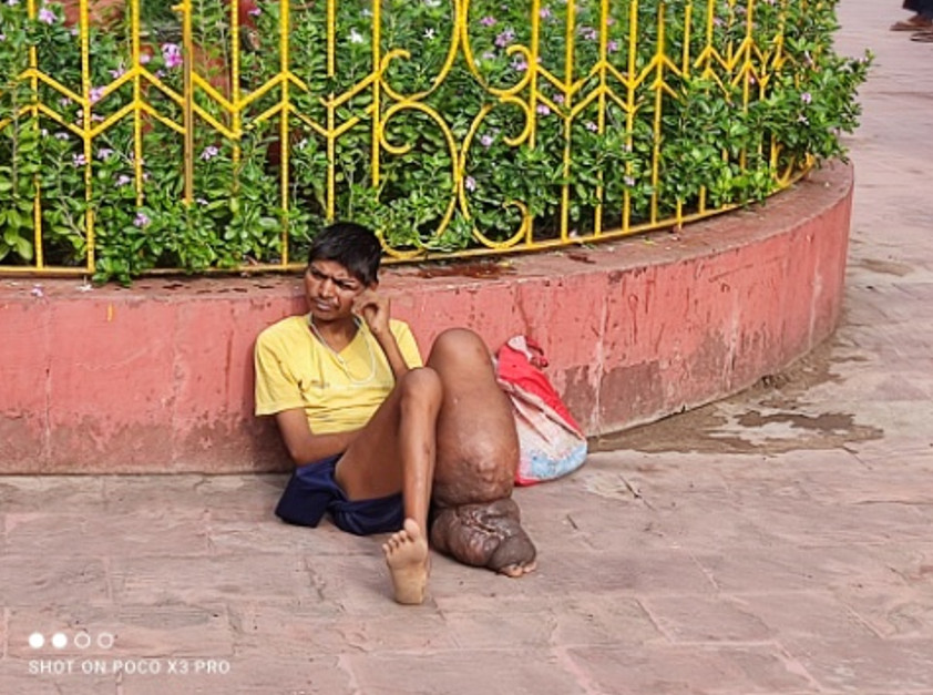 帶著聖哲的洗禮,走出菩提寺,領回保管物件,遠見有位腿疾的患者(如照片7),明顯左小腿腫的與右小腿不成比例,正常行動應是不可能,只能拖著左腿過一輩子,身旁簡單的包包,或許就是全部的家底。這畫面令人想到,以前看過的一張照片,就是德雷莎修女手握骨瘦如柴小孩的手,形成強烈的對比,也給世人一些震驚與喚醒。當今AI世代來臨,但世界各地的角落,在朱門酒肉的國度外,仍有許多不敢想像的貧苦存在,如這位腿疾患者。