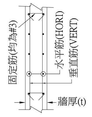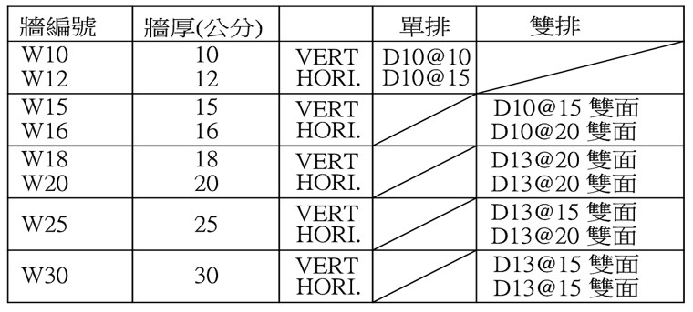| 表1 雙排牆筋配筋表 |