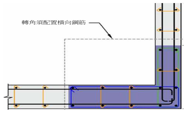 筆者認為如此規定可能違背設計原意而背負未按圖施工的責任。筆者認為牆與板的設計要點與設計原則是相同的,都要依據的就是結構力學原理顧好結構安全性、施工性、經濟性、相接牆連接或轉角的連續性與牆厚、可用空間等因素。並將設計結果清楚標示於結構設計圖上供施工單位按圖施工,才能兼顧所有需求,確保結構安全。茲將常岀現的鋼筋混凝土結構牆筋配置疑義探討如下: