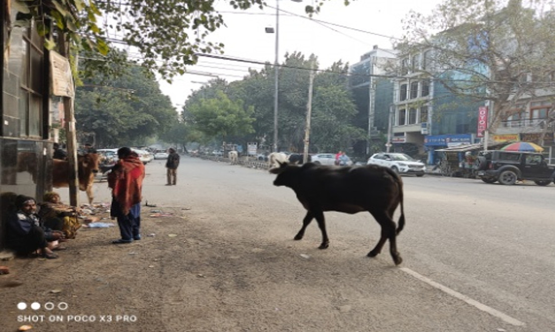 新德里是一個充滿對比和矛盾的城市,街道上可說是充滿驚奇,喧鬧的喇叭聲是交通的配樂,來往穿梭著牛群與路旁乞丐(照片1、2),牛或乞丐有時會直接睡在安全島。初到印度真讓人驚訝,讓你的感官完全受到充分的刺激,這就是真實的印度。馬路上,牛群悠閒地穿梭在繁忙的車道間是當地的日常,這景象令人驚訝和敬畏。這些神聖的動物在人們的生活中扮演著重要的角色,無論是在宗教信仰還是在日常生活中,它們都擁有獨特的位置。來往的車流幾乎也不曾有人驅趕牛隻,這畫面長久以來一直和平共存著。這裡真是動物的天堂,聽聞還有猴廟、老鼠廟,真是個萬物皆有靈的國度啊。