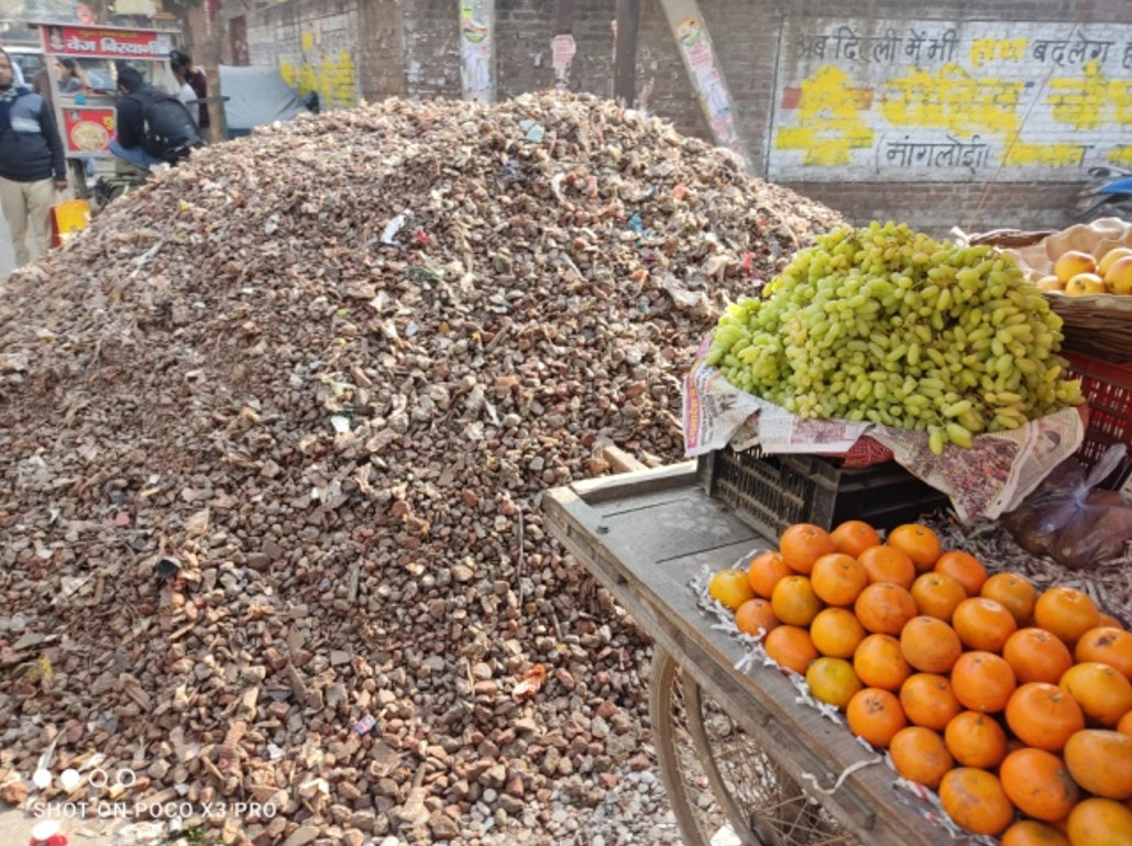 只是這堆磚碎石,再細看參雜不少雜物,像是塑膠袋、繫繩等,至少應該還要經篩過才可使用吧,反觀台灣砂石料源充足,真是寶島,而在這資源缺乏的國度,也就先將就吧。