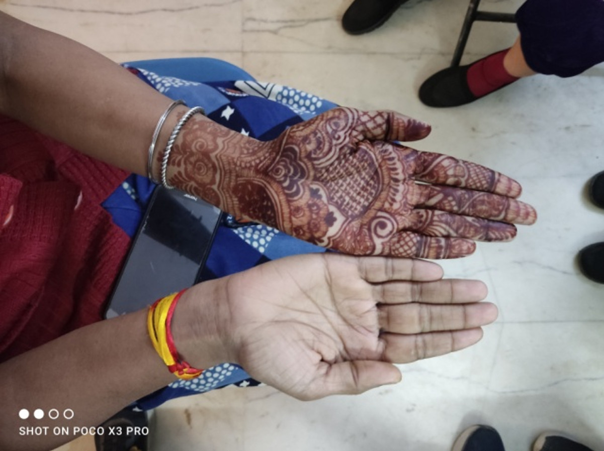 彩繪,令人想起,我們台灣的歌仔戲、八家將文化,臉部彩繪有其代表性、威嚇性,更有其文化代表性。當今的Henna與印度的文化、節慶、商業價值及歷史結合,交錯連結綿密,但Celin說 Henna 源頭並非印度,據她所知,源頭可追溯到5000年前的埃及。據說當時用途不單是身體彩繪,早期彩繪原料還可作為醫療用途,雖非源於印度,但也似乎撼動不了彩繪在印度的代表性地位。