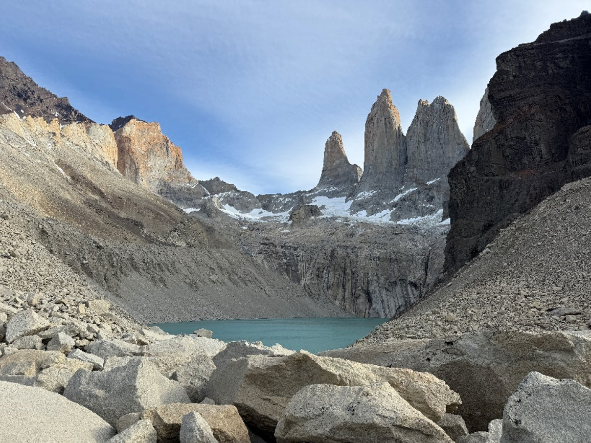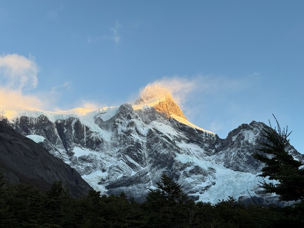 走在W線的每一天,都是與大自然對話的過程。西側的灰冰川步道通往蔚藍的冰壁,沿途可聽見冰崩轟鳴、觀察冰塊漂浮於湖面。中段的法國谷地勢寬廣,步道穿越森林與溪谷,走在冰河侵蝕而成的U字型山谷中,耳邊是鳥鳴、風聲與遠方雪崩的迴響。東側的百內塔則是整條W線的精神象徵,許多健行者會在凌晨三點出發,摸黑攀登至觀景台,只為迎接清晨第一道陽光灑落三座石塔的瞬間。那金光灑落的景色,不為任何人而存在,卻足以讓人動容。這些不言語的山林景觀,將你從日常中抽離,讓身體疲憊的同時,心靈也變得透明而寧靜。