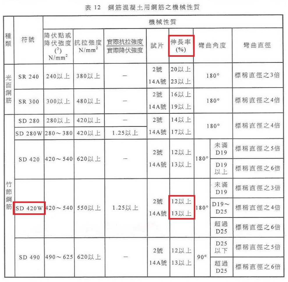 | 圖3 建築物混凝土結構設計規範之伸長率合格標準【3】 |