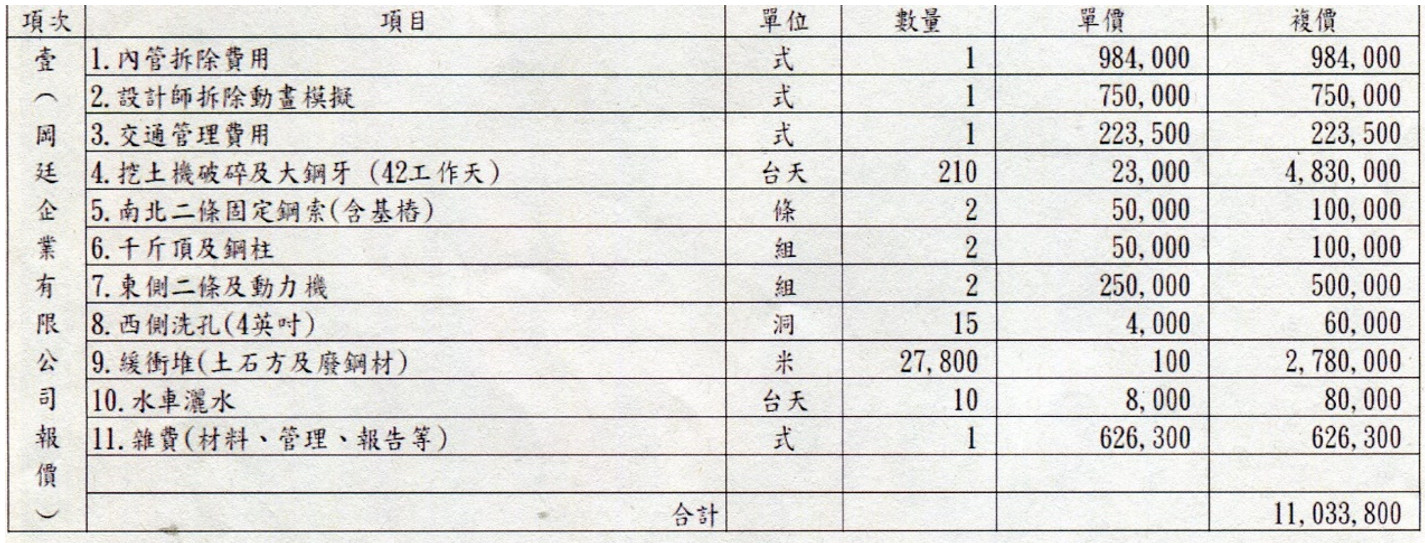 1.岡廷企業有限公司報價11,033,800元:詳表1。