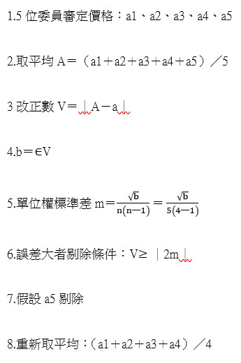 (七)林口發電廠合理價金計算機制建議:先取平均值,按著計算單位權標準差,若改正數大於兩倍單位權標準差,則剔除誤差大值重新取平均。