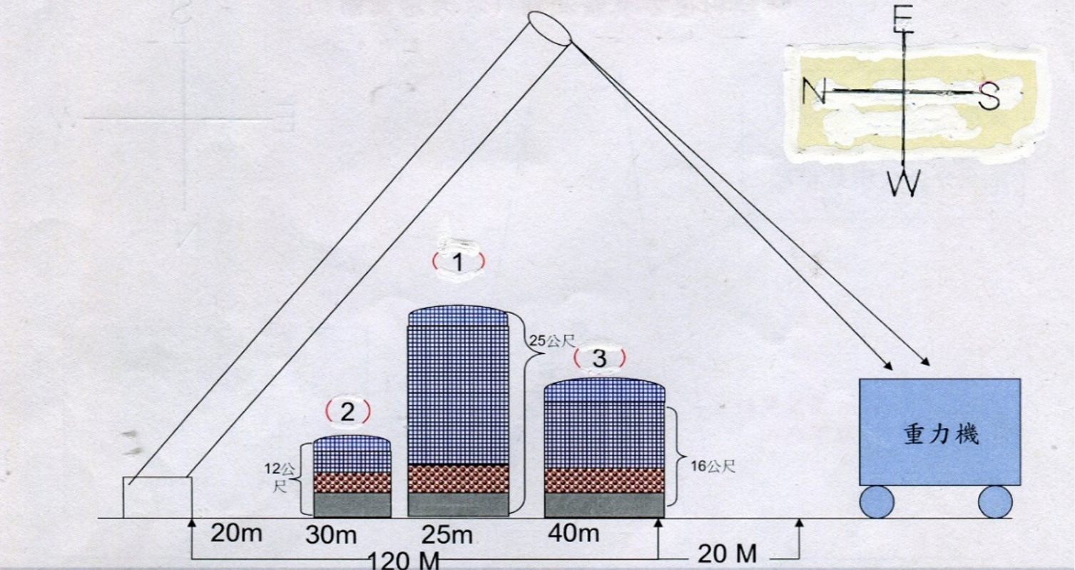 | 圖6 從煙囪頂往下拉二條鋼索固定地面之重力機 |