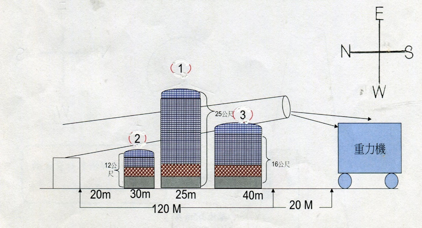 | 圖8 最後煙囪成功傾倒於(2)緩衝墊及(3)緩衝墊上 |
