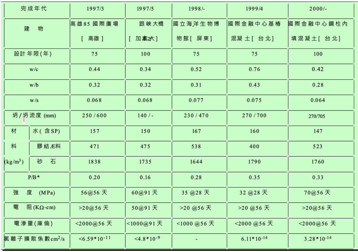 表3 高量飛灰填塞空隙達到提升混凝土性能與耐久性的案例