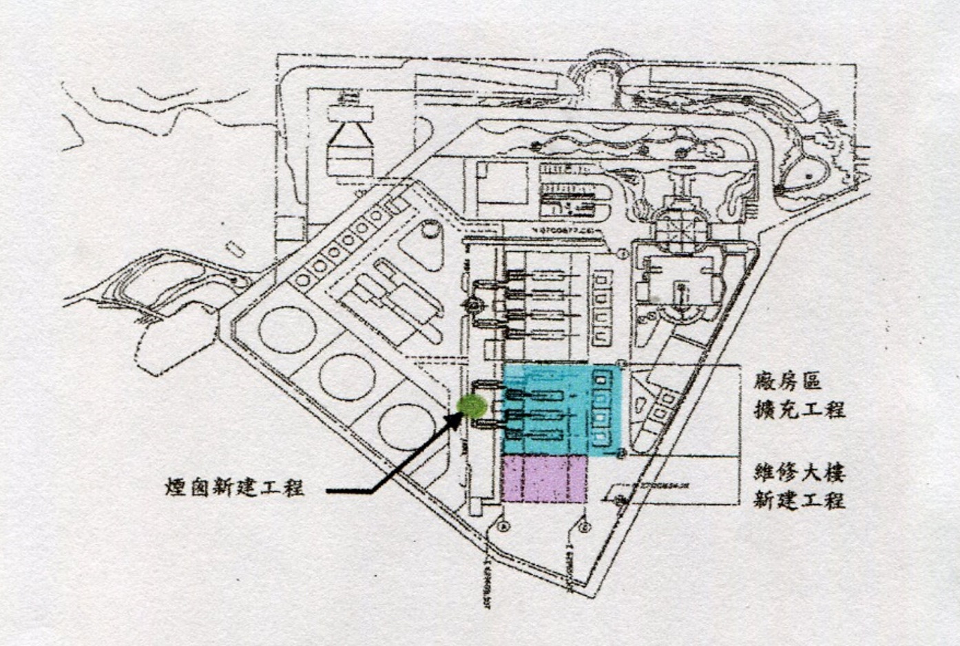 | 圖1 塔山電廠配置圖(塗色為擴建部分) |