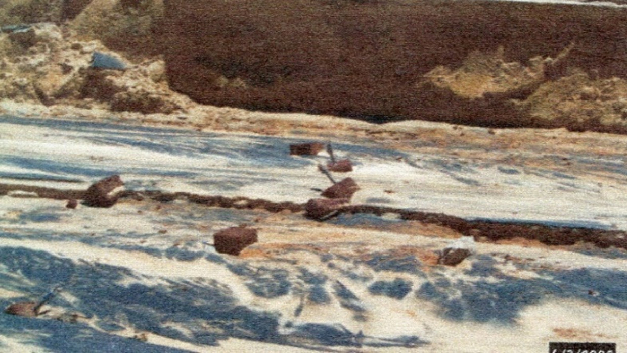 | 圖4 冷卻水逕流沖刷雷區地表露出地雷 | | 圖5 冷卻水管路施工 |