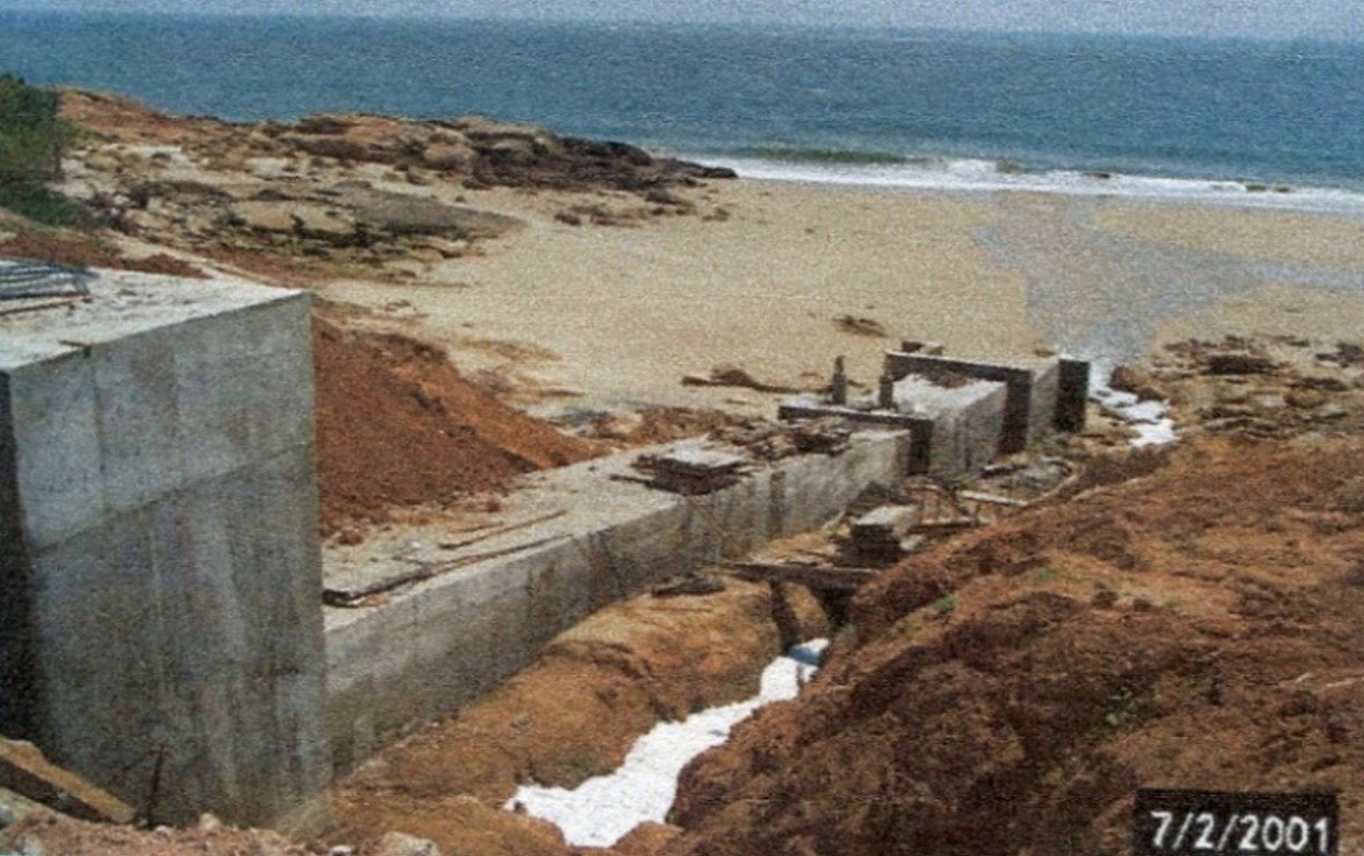電廠排放之冷卻水管路,原計畫只施作到雷區前,雷區至海以逕流方式排放,一至四號機組相繼商轉發電後,冷卻水逕流沖刷雷區地表,挾帶泥砂污染海域,並露出10餘顆地雷於砂灘上(詳圖4)。台電基於環保及安全考量,計畫將冷卻水管路延伸至最高潮下之海床,以免泥砂污染海域,於是委商將冷卻水路經過的區域先施行排雷後,再施作冷卻水管路(詳圖5)。