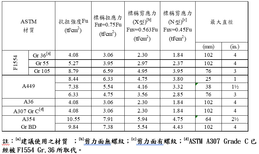 表1 各種錨栓材質等級與機械性質