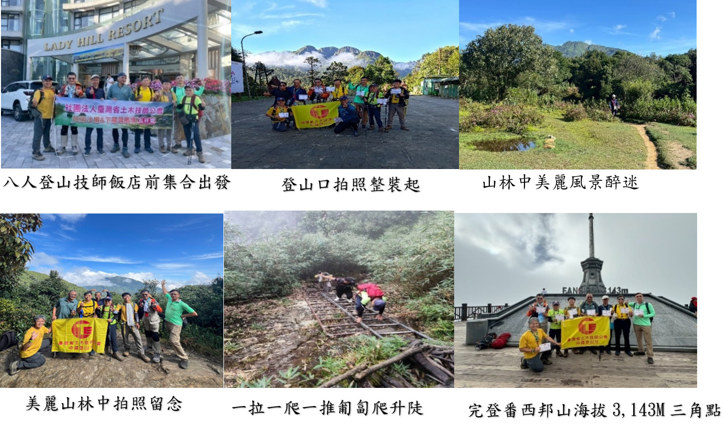 臺灣省土木技師公會中區登山社舉辦「114.09.19-23北越沙壩五日遊」,9月20日第二天行程分觀光與登山組旅遊,參加登山組有八名技師挑戰越南最高山峰番西邦山登山縱走,體驗異國山林風情美艷。