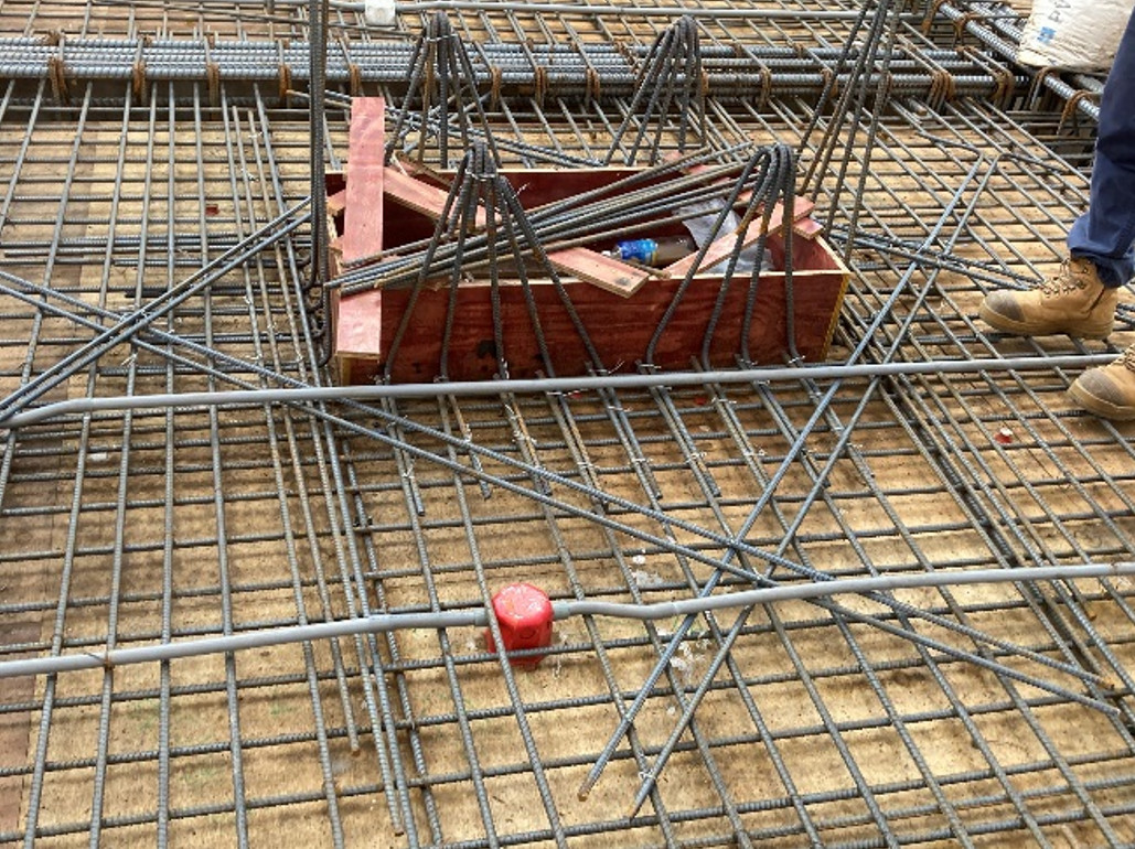 二、板及牆開孔補強的結構力學行為 開孔孔邊補強的力學行為主要是針對因開孔導致的應力集中現象進行調整,確保結構的傳力路徑不致因開孔而中斷。當板或牆體出現開孔時,原本連續的傳力路徑會被截斷,易產生應力集中於開孔的角隅處,因此補強鋼筋的配置變得格外重要。一般而言,沿開孔邊緣正交方向的補強筋能有效承擔主要應力傳遞,而額外增加的斜向加強筋則能進一步分擔角隅的應力,減少裂縫發生的機率。在實務設計時,應根據結構的實際受力行為與施工條件,靈活調整補強筋的數量與位置,以達到結構安全性、施工性與經濟性的平衡。惟斜向加強筋雖能進一步分散角隅的應力,但因沿開孔邊緣正交方向的二側面補強筋縱橫向已有4層,以15公分厚的非結構牆採用D16補強筋為例,實務施作上含鋼筋間隙會已佔用15公分厚非結構牆總厚度其中的11公分,所剩約僅4公分,若再加上額外增加的2根D16斜向補強筋則剛好塞滿15公分全部非結構牆的總厚度,顯然勢必會產生嚴重蜂窩現象及產生對角裂縫的後果。開孔補強是純結構力學的行為,必須以符合結構力學的觀念才能有效解決問題,板及牆在開孔角隅處所需考慮的受力模式與計算方法分述如下: 2.1板之受力種類 板之主要受力模式可歸納為面外受力與橫膈板之面內剪力二大類: 對於承受面外受力型式,亦即為樓板面上的靜載重及活載重,樓板面上的開孔尺寸在一般鋼筋混凝土結構標準圖中所提供的最大開孔尺寸大都限制在80公分以下,樓板開孔尺寸超過標準圖提供之最大尺寸時,可先檢視開孔尺寸佔該板的比例、開孔位置、厚度,以及開孔對該板結構安全之力學行為等之影響程度而定。例如板中央區已全部挖空,僅剩該板四周邊之類似陽台或雨庇之懸臂板,則僅須對該懸臂板及其根部之固定能力進行檢核設計即可,無需作開孔補強;若開孔尺寸超過標準圖所提供之最大尺寸,但仍佔該板尺寸之小部分或該板較厚,補強筋足以傳遞力量使達力學行為連續的效果,則仍可依標準圖提供的原則進行補強;又若開孔尺寸太大或太長,或孔邊有集中載重等情況,則宜增設孔邊小梁的方式補強。對於鋼承板混凝土樓板的情況,因鋼承板各肋梁間缺乏横向傳遞及分散集中載重的能力,此時雖然開孔尺寸不大,但若僅依鋼筋混凝土樓板開孔補強標準圖提供的開孔補強方式進行補強,恐難以達到補強效果,此時建議改採設置孔邊四周鋼小梁的方式補強。 對RC板開孔之長邊尺寸超過30公分,但小於或等於80公分者,被開孔截斷的版鋼筋須將被截斷的等量鋼筋,平分配置於孔邊補強之,須持別注意的是平移至孔邊的補強筋數量,不得將原已配置於孔邊的原設計直通版筋計入補強筋數量内(亦即,斷幾支版筋就要補足幾支,且版鋼筋為單層時補強筋亦為單層,版鋼筋為上、下雙層時補強筋亦須為上、下雙層)(板開孔補強筋數量不足的案例見照片2)。