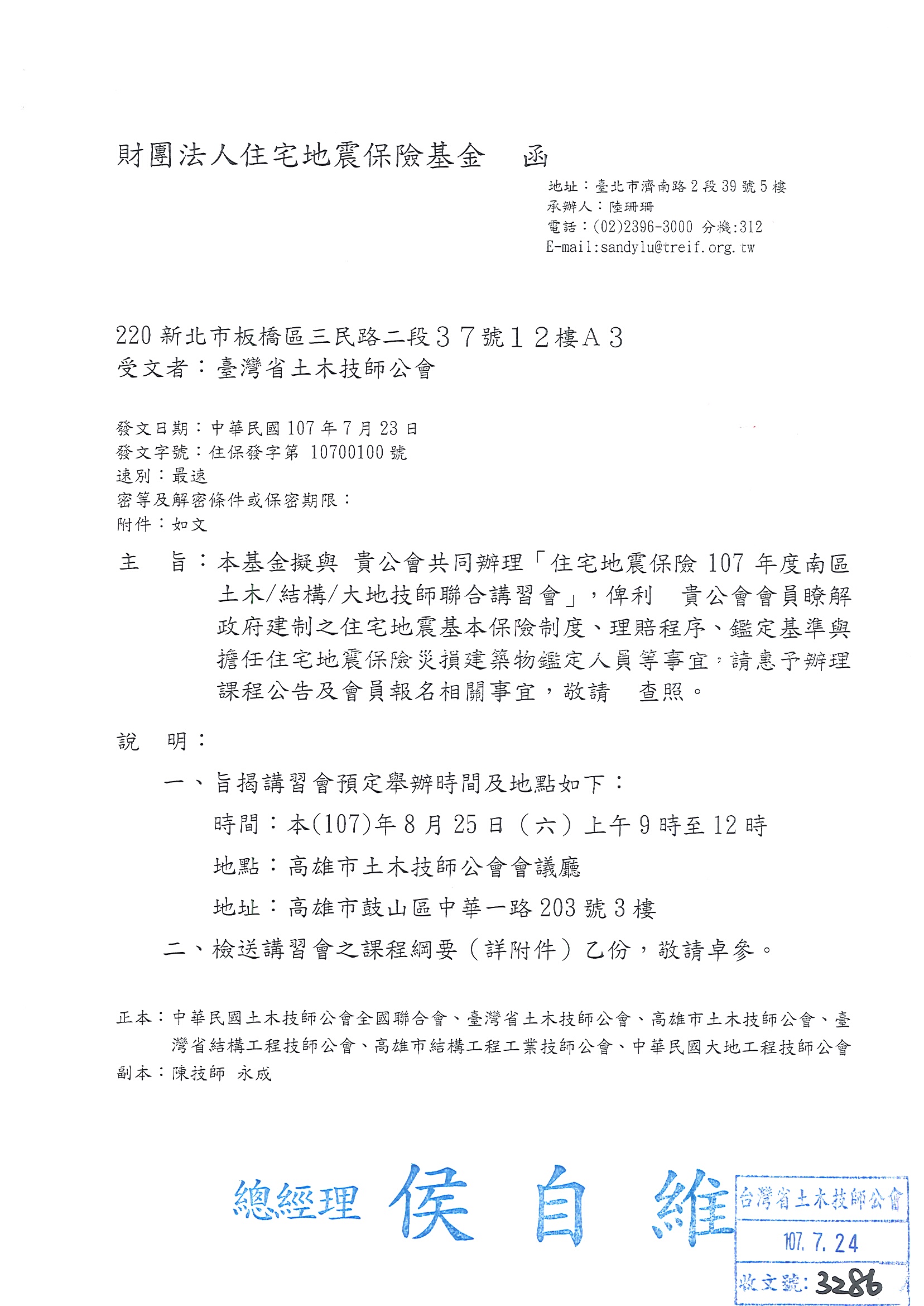 : 107.08.25住宅地震保險107年度南區土木/結構/大地技師聯合講習會