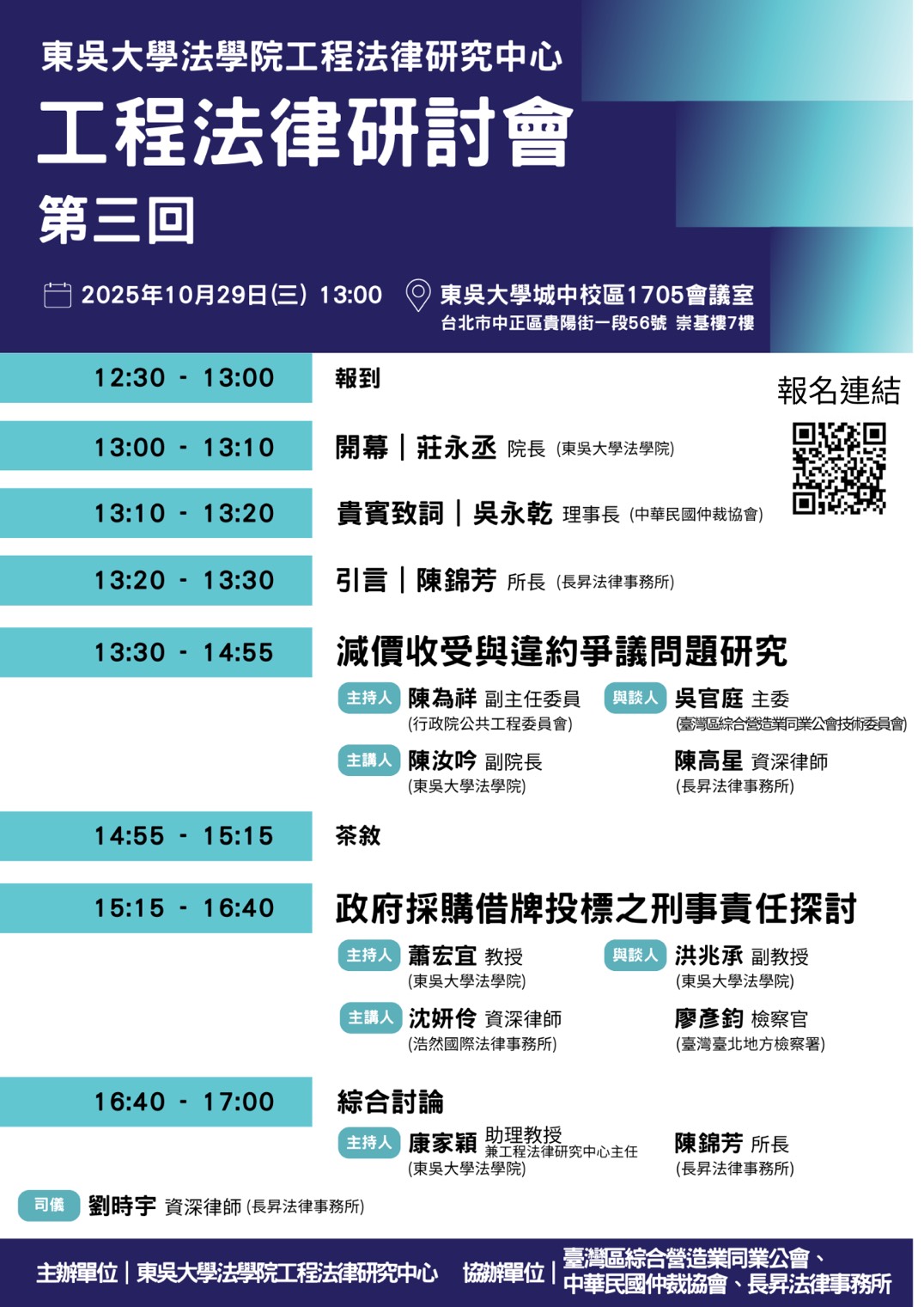 : 東吳大學法學院工程法律研究中心 舉辦「工程法律研討會」第三回